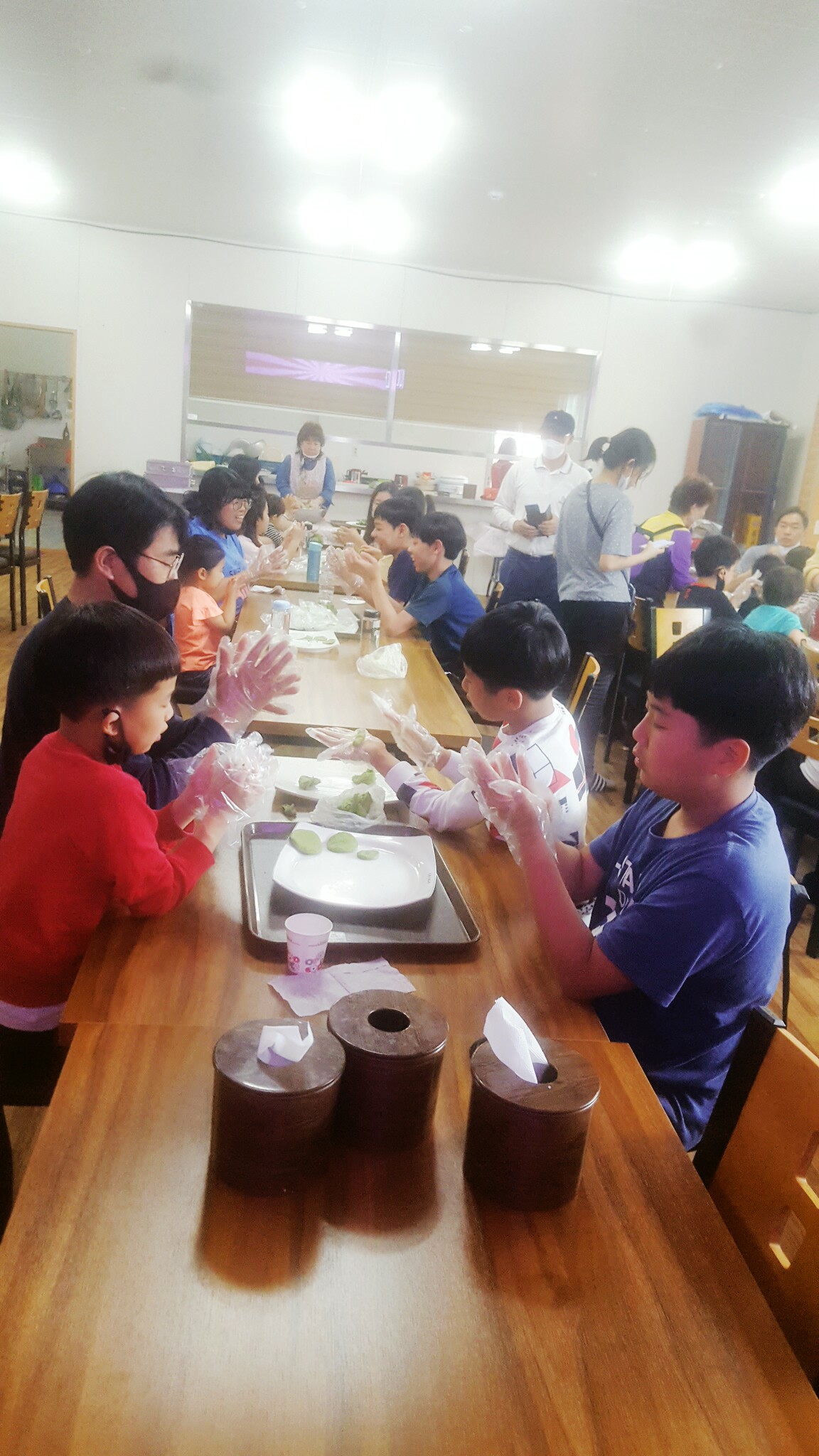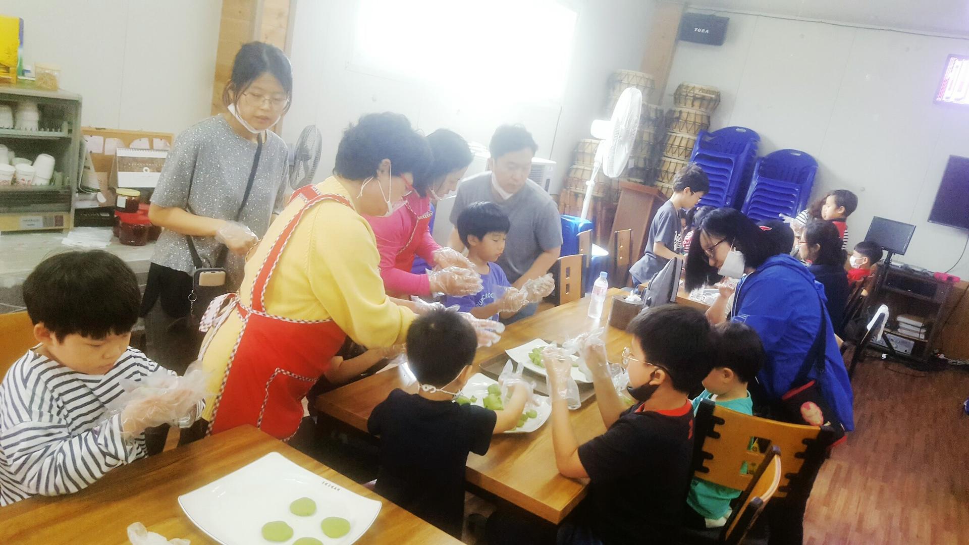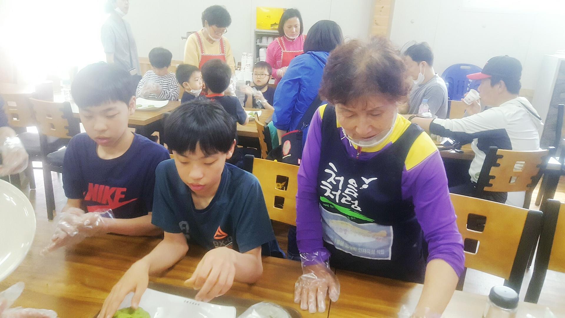 다음으로는 쑥떡인데요 이 쑥들은 할머니들이 직접 캐시고 방앗간에서 반죽으로 만들어서 반죽을 만들어 주시고 우리가 모양을 내서..